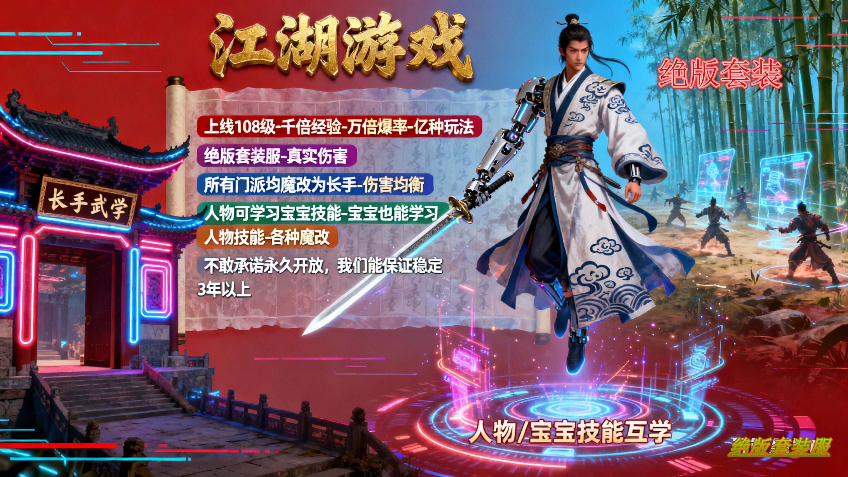• 《友情提醒》:»近战门派技能全改,不在被放风筝,本服绝对均衡(干干干)!!!!!!!!